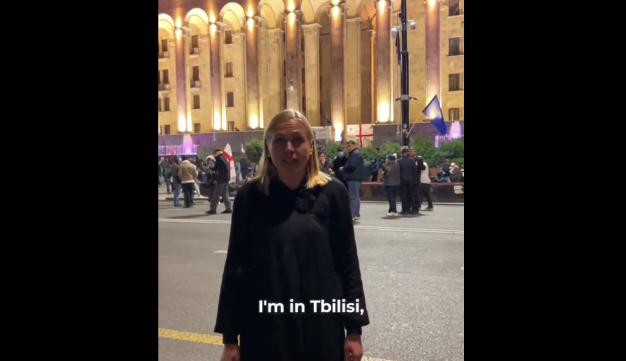 «Я нахожусь в Тбилиси, перед зданием парламента. Здесь проходит мирная демонстрация. Постепенно приходит всё больше людей. Люди размахивают флагами Евросоюза, НАТО, а также, как я вижу, Финляндии и, что самое главное, Грузии. Причина в том, что эти люди обеспокоены курсом, который выбирает страна, отнимая у народа основные свободы — начиная со свободы выражения мнения и свободы собраний. Излишне говорить, что эти люди заслуживают всех этих прав, и мы здесь, чтобы поддержать их».