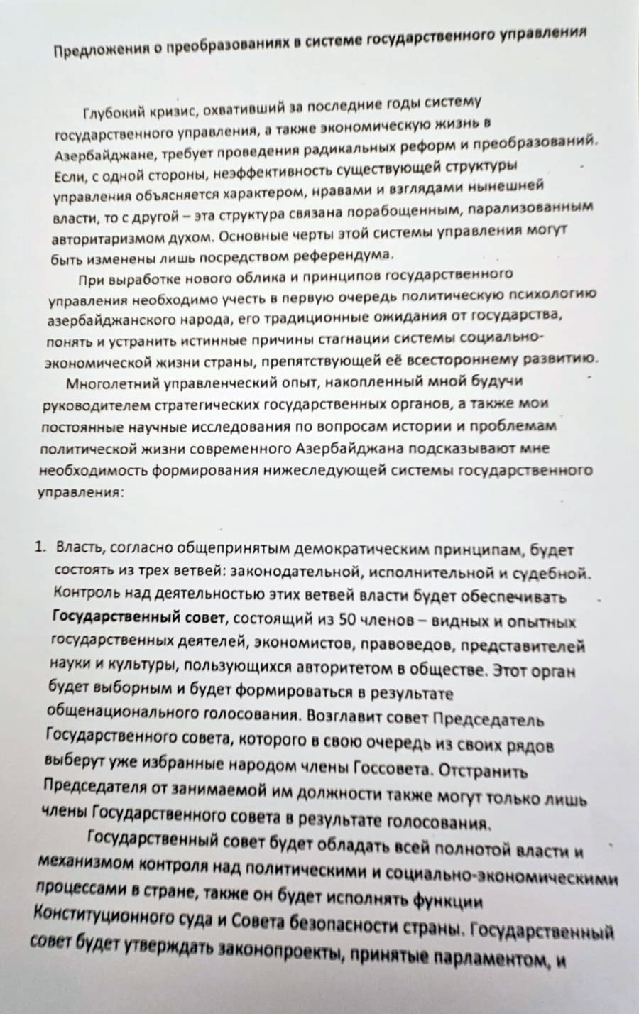 Ранее в обществе высказывались сомнения относительно существования подобного документа, однако появившиеся материалы подтверждают, что Рамиз Мехтиев действительно вынашивал планы дестабилизировать ситуацию в стране при содействии иностранного государства.