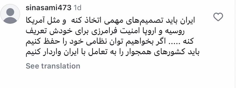 Реакции различных слоев иранского общества на заявление Али Акбара Велаяти показывают не только политическое недовольство, но и озабоченность по поводу его возраста и здоровья. Один пользователь отметил, что Иран должен принимать важные решения и, как США, Россия и Европа, определить концепцию пограничной безопасности. «Если мы хотим сохранить наш военный потенциал, мы должны вовлечь соседние страны во взаимодействие с Ираном и поощрять их к сотрудничеству», — подчеркнул он.