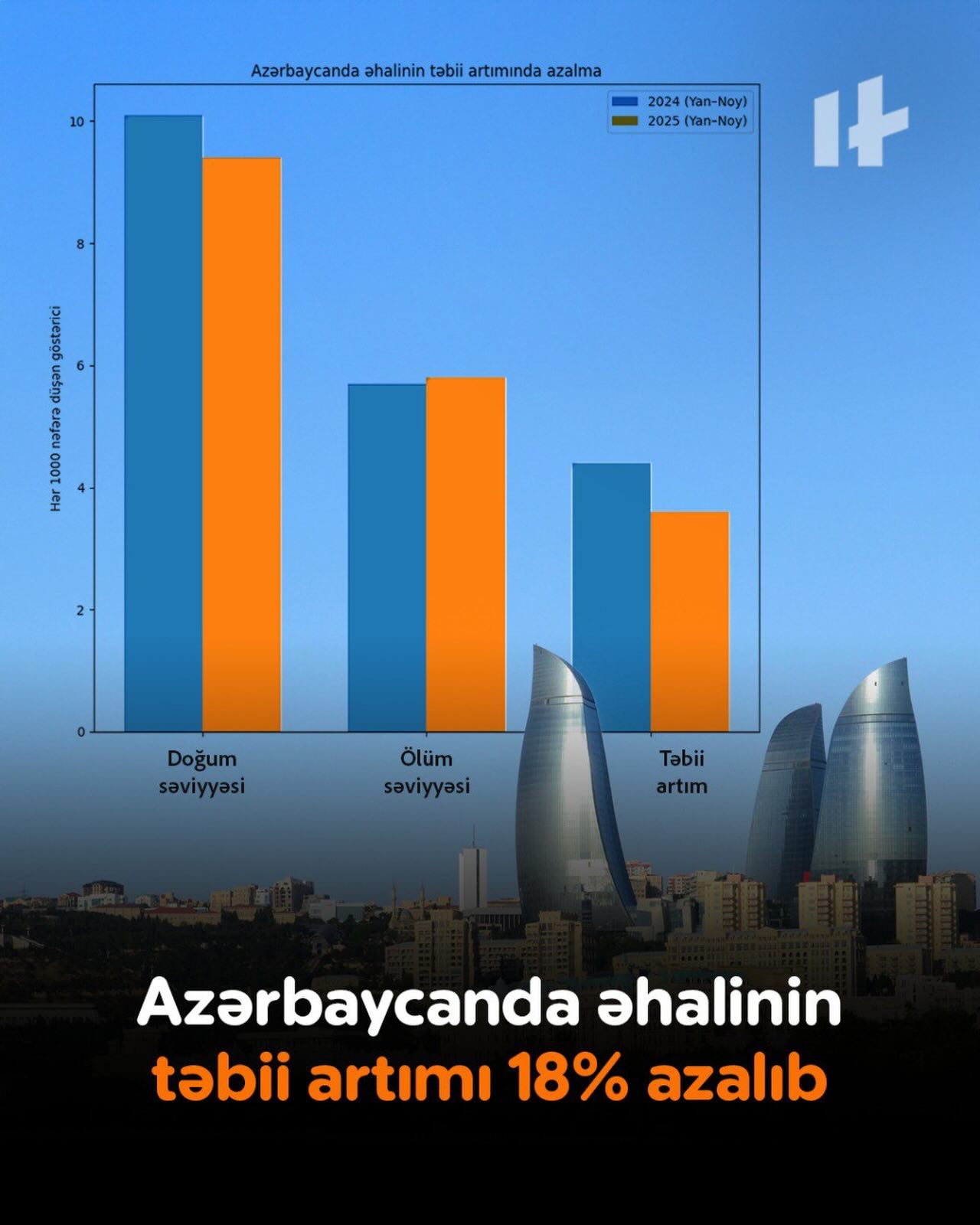 В Азербайджане зафиксировано значительное сокращение естественного прироста населения. Согласно официальным статистическим данным, в результате снижения рождаемости и роста смертности темпы естественного прироста населения сократились на 18,2%.
