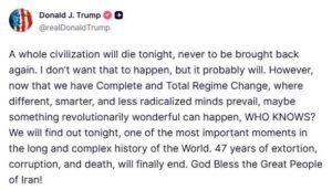 По его словам, «47 лет вымогательства, коррупции и смерти» в Иране подходят к концу, а на смену радикалам могут прийти «более разумные силы».